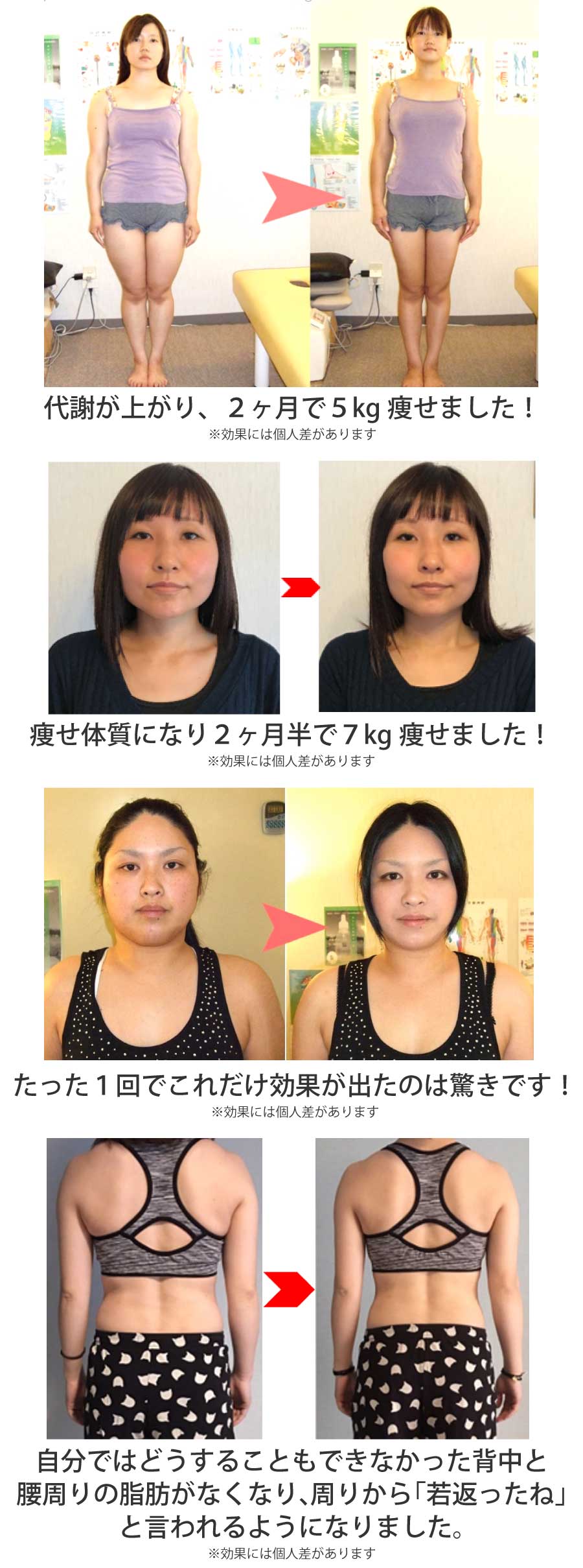 そして、この施術法を患者さまにも施すようになり、患者さまもみるみるやせていくではありませんか。その結果は当然でした。