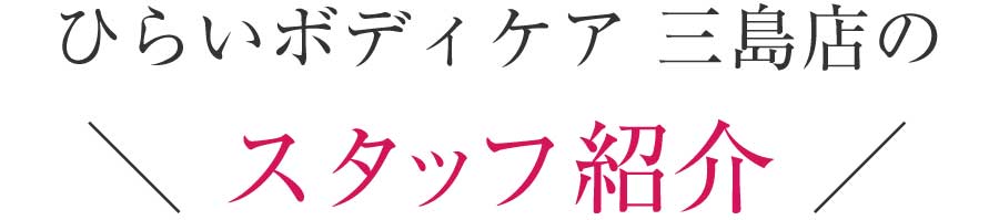 そしてこの度、三島市の人の健康に貢献したい!という想いから、南本町に整体院を開院させていただきました!一人でも多くの人の痛み・しびれ・コリに対応させていただき、地域の人の健康に貢献させていただければと思います。地域で一番【人】を大切にする整体院を目指しますので、どうかよろしくお願いいたします。